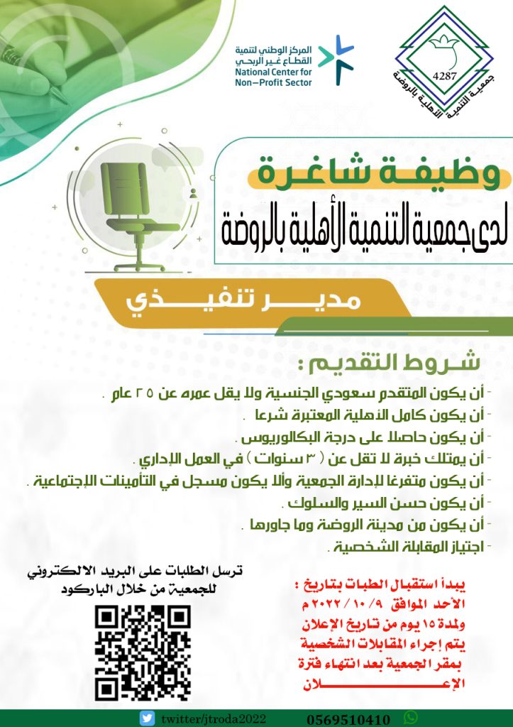 هي جمعية تنمية أهلية تم تأسيسها بموجب موافقة المركز الوطني لتنمية القطاع غير الربحي وتم تسجيلها برقم (4287) ومقرها مدينة الروضة وتقع مدينة الروضة جنوب منطقة حائل بمسافة (90) كم .